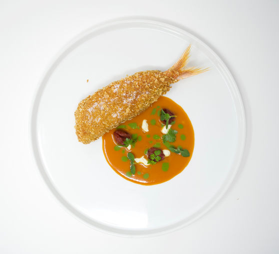 Tartare di gamberi bianchi locali, gazpacho e panzanella